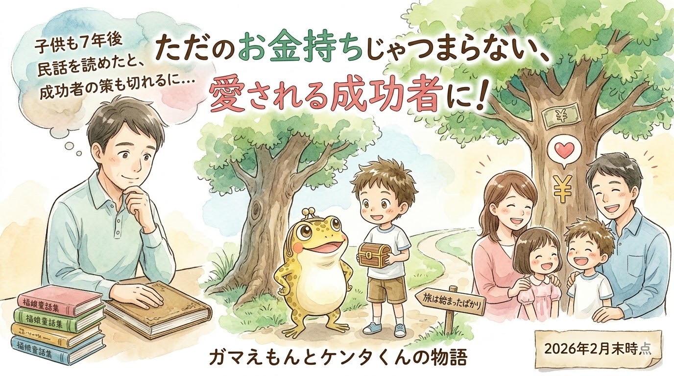 現在、10記事ほどを書き終え、ガマえもんとケンタくんの旅は始まったばかりです(2026年2月末時点)。「子供にお金の教育をしたいけれど、何から教えればいいかわからない」 「家族との時間を大切にしながら、経済的にも自立したい」 そんなパパ・ママ、そして未来を担う子供たちのヒントになれば幸いです。