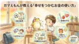 ケンタ:「そっか!僕、まずはバスのチケットを買うために、お小遣いを無駄遣いしないで貯める練習から始めてみるよ。ガマえもん、ありがとう!」