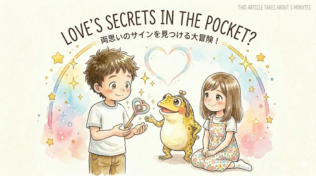 ガマえもん:「道具なんていらないよ、ケンタくん。大事なのは、自分の『不安』を見るんじゃなくて、二人の間の『空気』を感じることなんだ。今日は特別に、お金よりも価値がある『両思いのヒミツ』を教えてあげるね!」