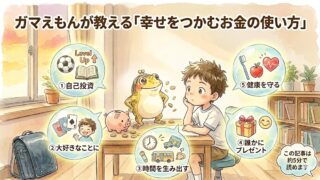この記事は約8分で読めます。登場人物ガマえもん:頭に大きなガマぐちポケットがあり、お金と成功のヒミツに詳しいカエル型未来ロボット。ケンタくん:小学5年生。「将来はお金持ちになりたい!」と夢見る元気な男の子。プロローグ:お手伝いだけじゃお金持...